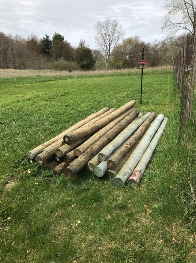 After verifying the absence of utility lines and getting the extended area approved by our township, I bought materials. Last Saturday I got to work digging out new post holes, placing posts, and tamping dirt and gravel down (no concrete). I traveled this week but got some time to work on it again Thursday and Friday evenings. I’m now through 2/3 of the posts.